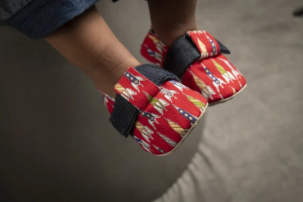Our shoes are individually cut, sewn and finished to perfection to fit your baby’s feet snugly. Made with non-slip suede soles, breathable fabric uppers, fully lined with no exposed seams and heel elastic to ensure a good fit