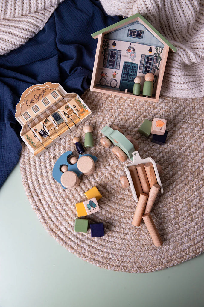 This open-ended wooden toy could quickly move from the nursery décor shelf onto the floor, where your child can explore, play, and learn with the sturdy pieces. The arches can also become bridges for cars, animals and alike during pretend play. The opportunities are endless.
