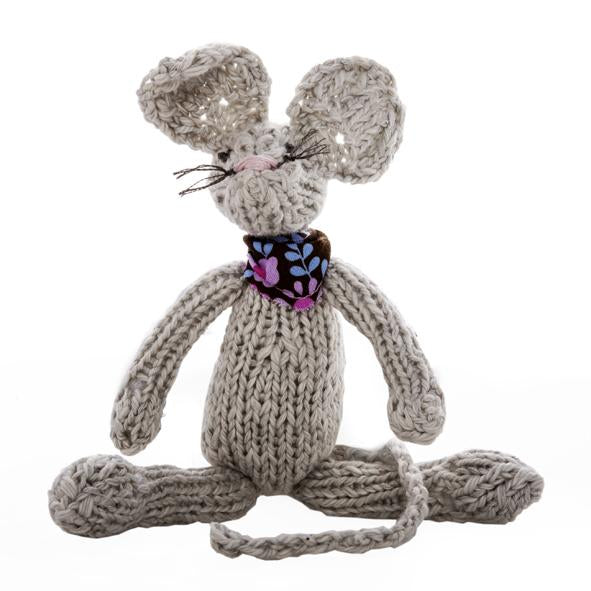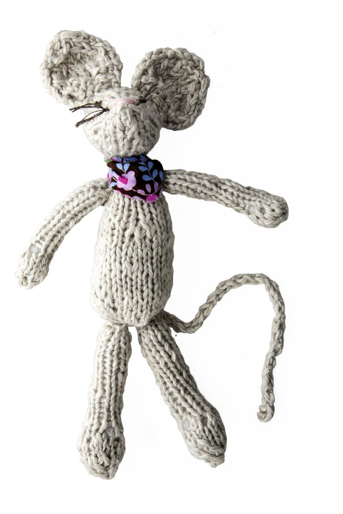 Hand knitted cotton yarn mouse with polyester filling. Hand wash