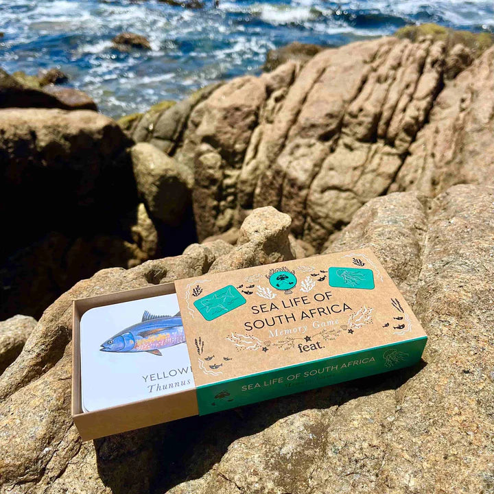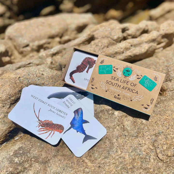 Our ‘Sea life of South Africa Memory Game’ includes 50 cards depicting 25 local sea creatures with their common and scientific names. It will be your job to get more matching pairs than your opponent, while enjoying all the learning you’ll experience as you admire SA’s incredible sea life with each card flip.