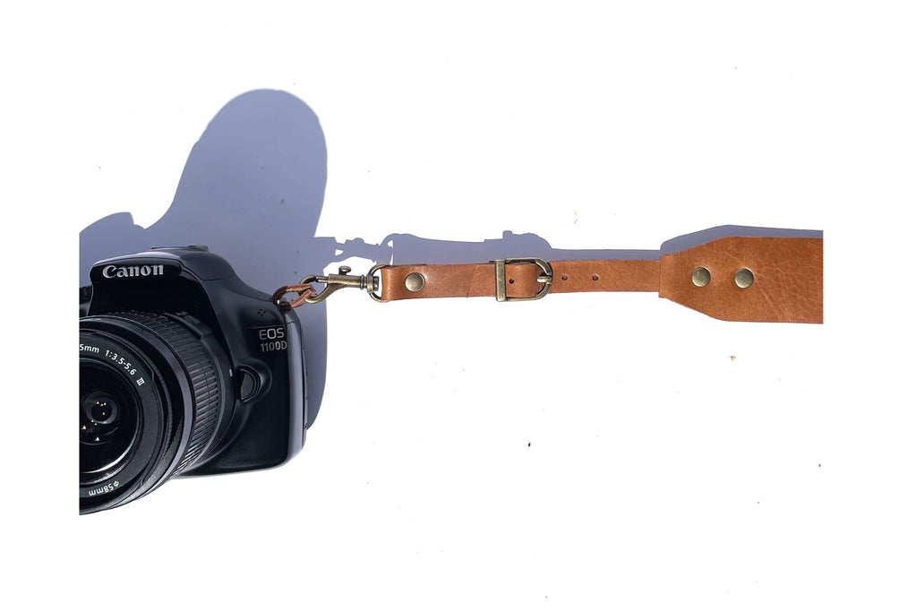 The camera strap is made from vegetable tanned genuine leather and is designed for DSLR, Mirrorless & Film cameras.