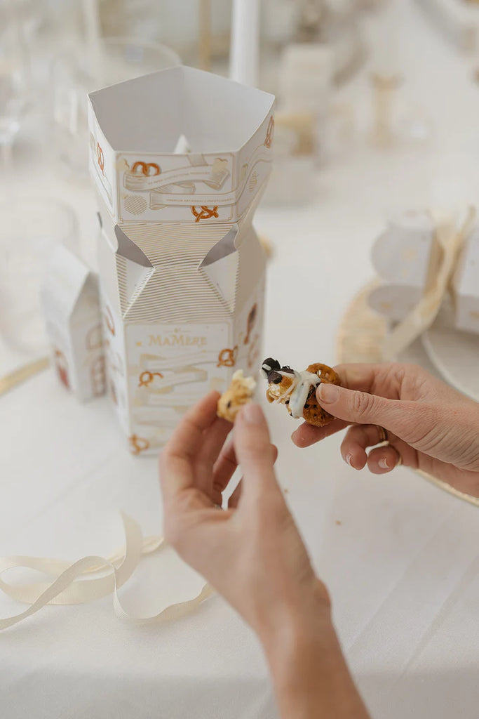 Add a touch of luxury to your festive season with our beautifully designed Reindeer Food Giftboxes, filled with a mix of salted caramel popcorn & crunchy Pretzels drizzled with delicious dollops of luxurious white and dark chocolate. These exquisite cracker style boxes make the perfect table decoration, adding a charming flair to any holiday gathering. They also double as thoughtful stocking stuffers or delightful hostess gifts, bringing joy and a taste of indulgence to those special moments. Celebrate the season with a little extra sweetness!