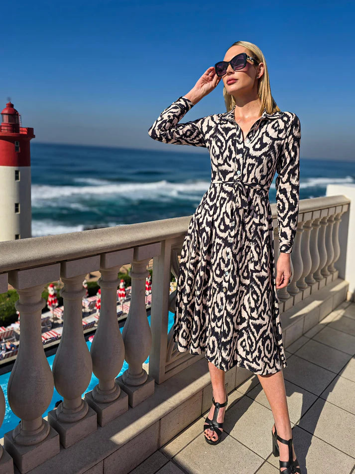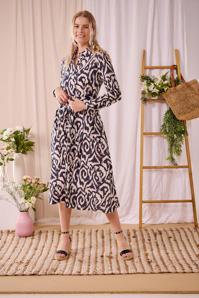 The Blake Dress is back, a sophisticated long-sleeve collared shirt dress that seamlessly blends classic tailoring with modern design elements. Crafted from high-quality 100% viscose, this dress offers both comfort and style, making it a versatile addition to any wardrobe.