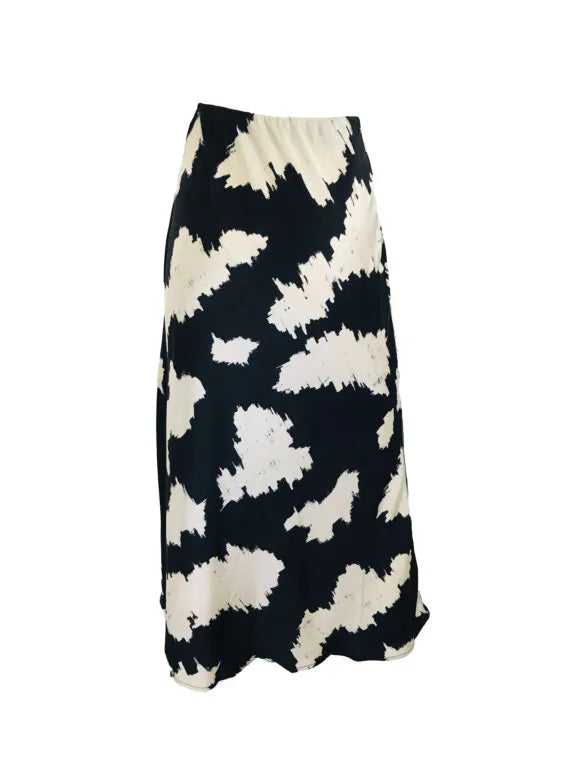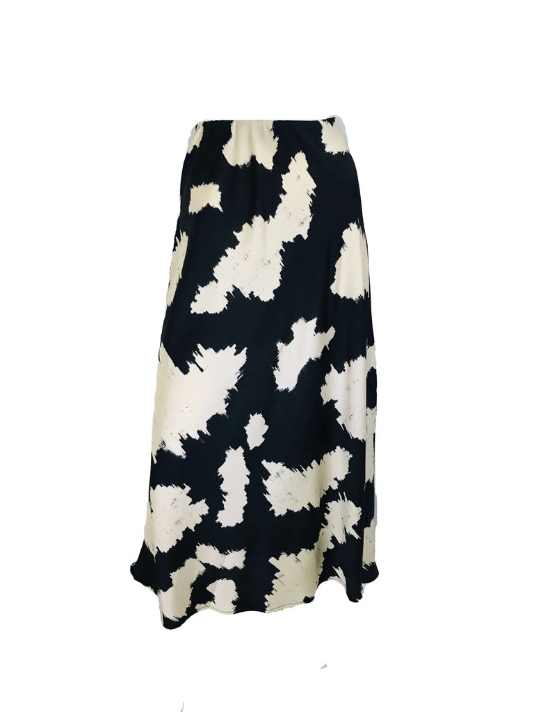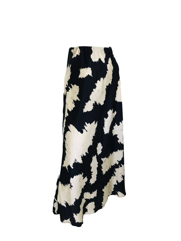 Bias Maxi Skirt – Black Ivory Splash – Arman Satin