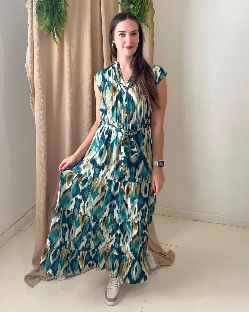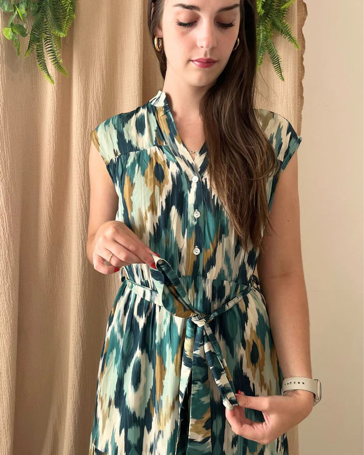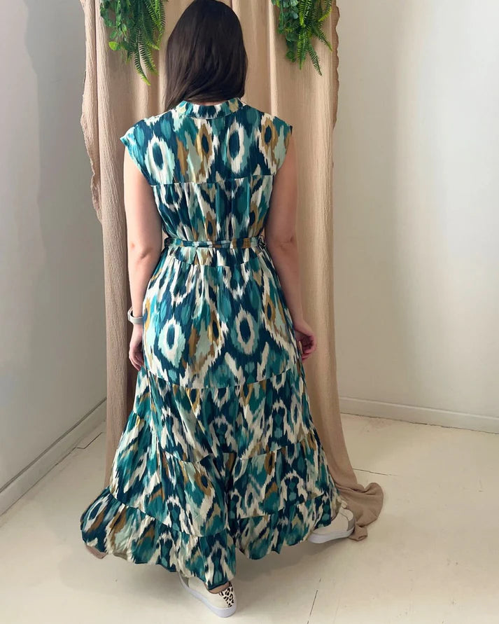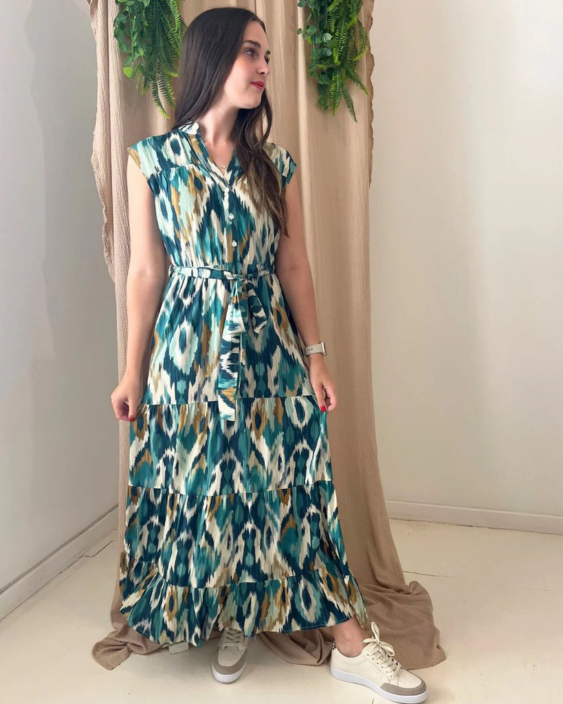 Coco - Oasis: Button-up classic tiered dress with detachable belt