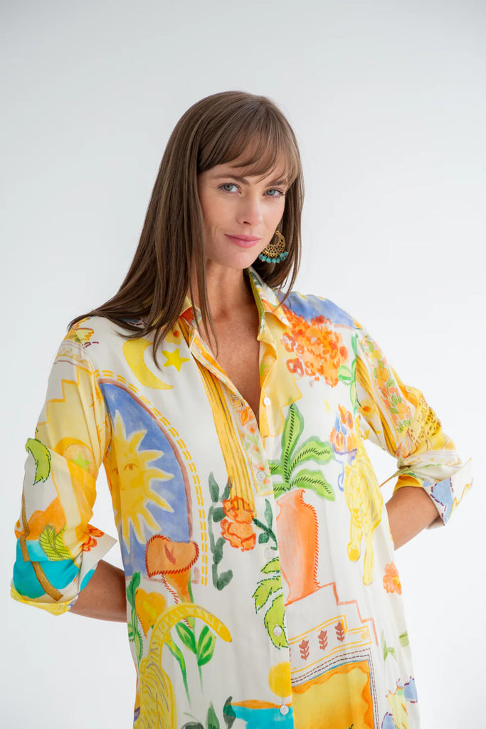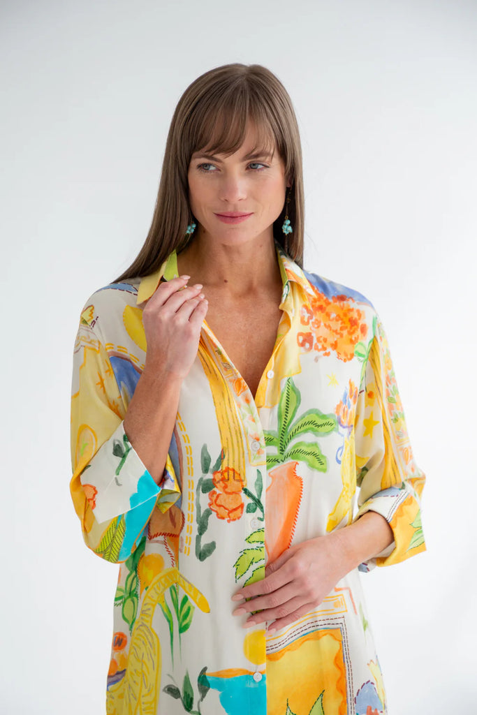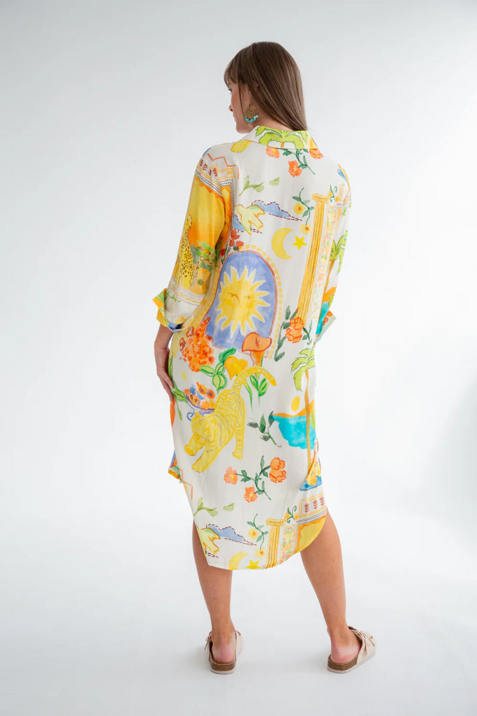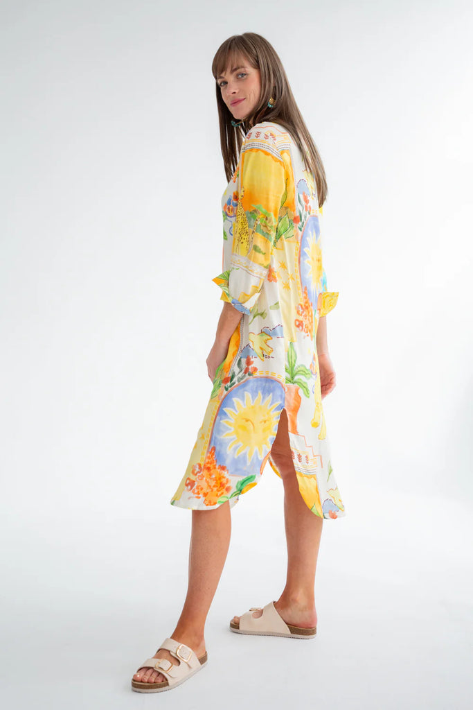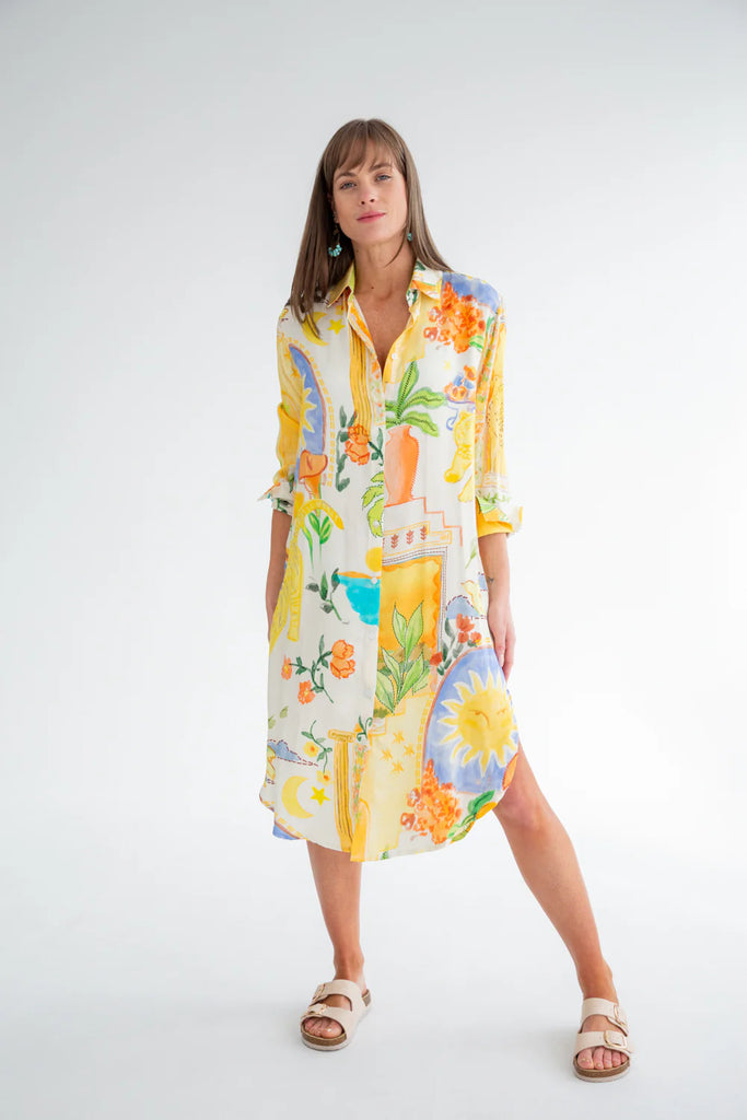 A new and versatile addition to our summer range. It is an easy wearing button up shirt dress with a high low hem with side slits. Our Evie Dress can be worn open over our Mykonos Shorts or Gorge Pants as a set!