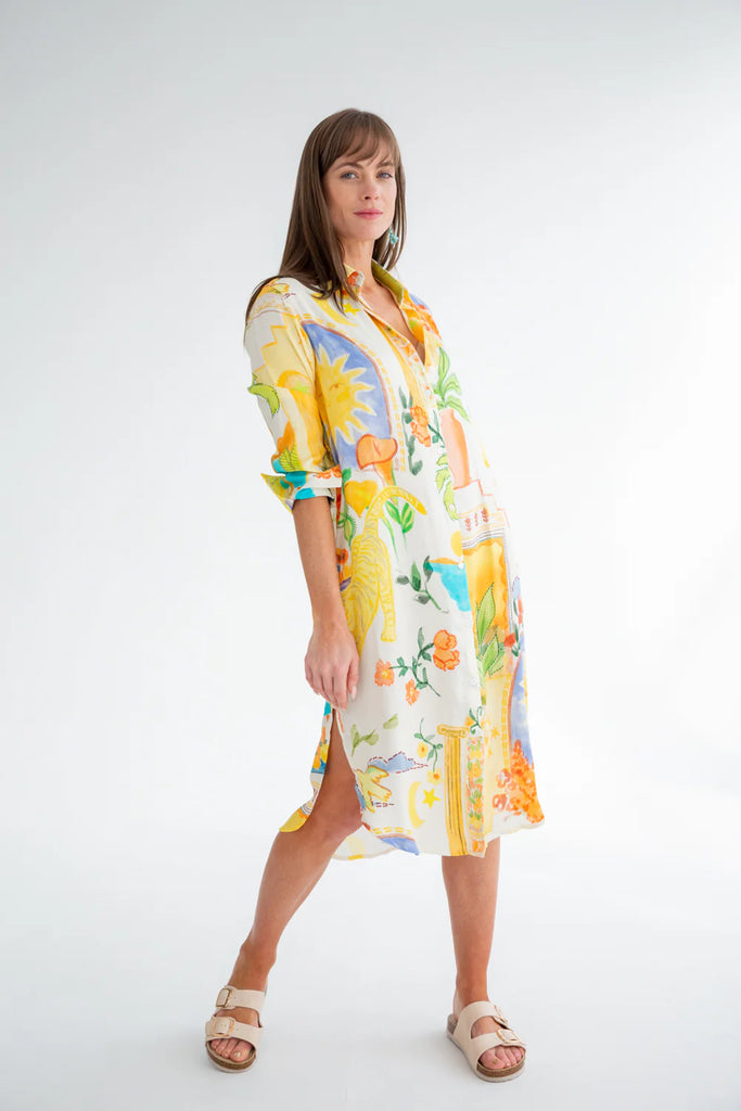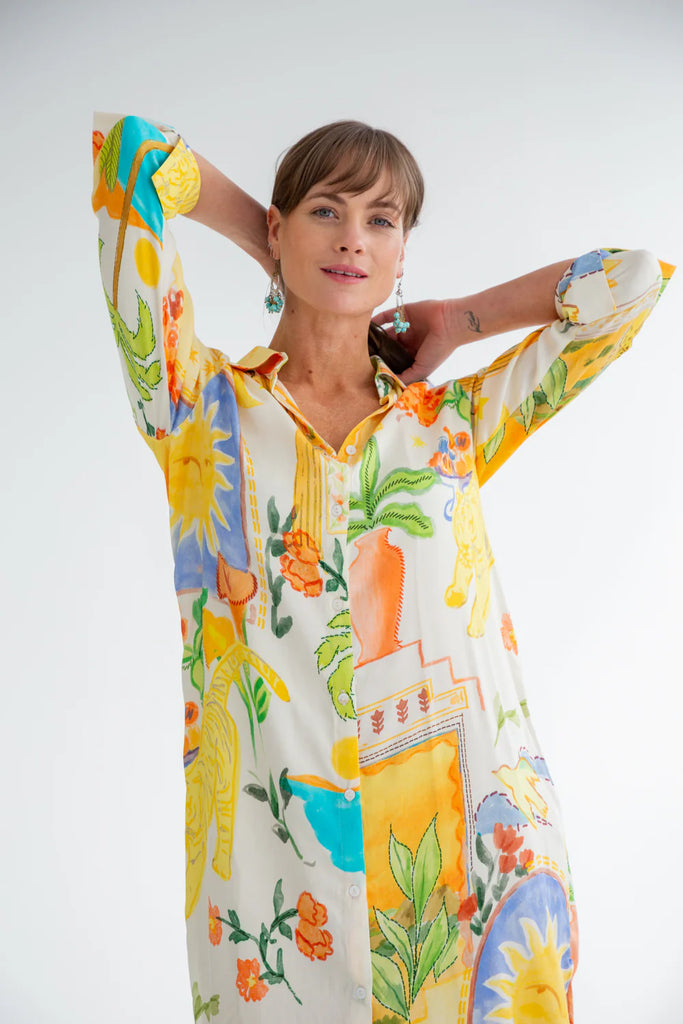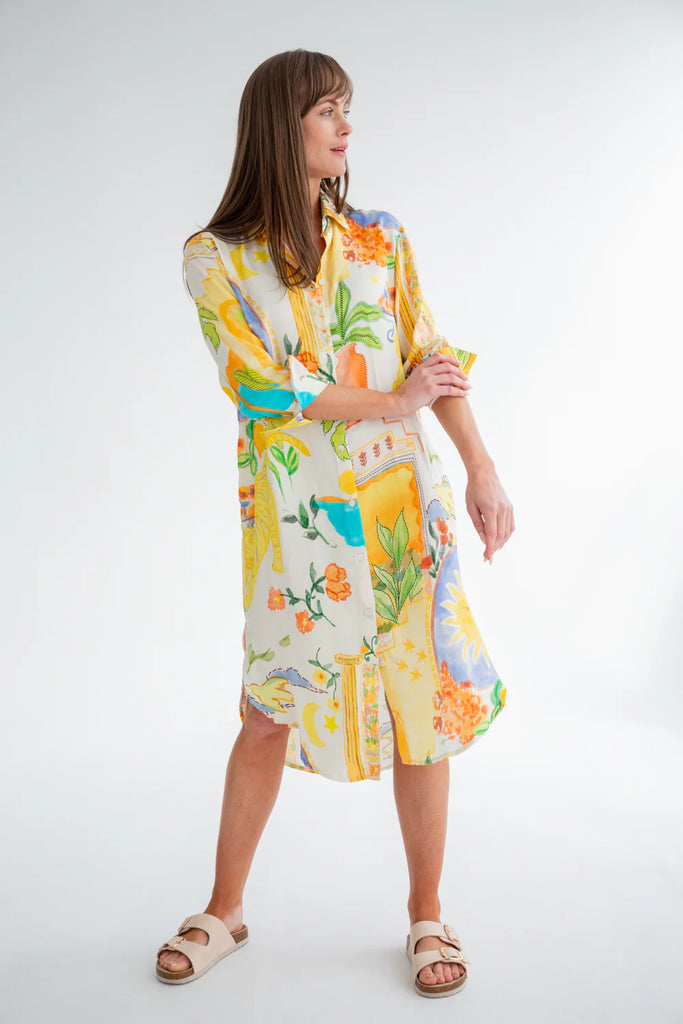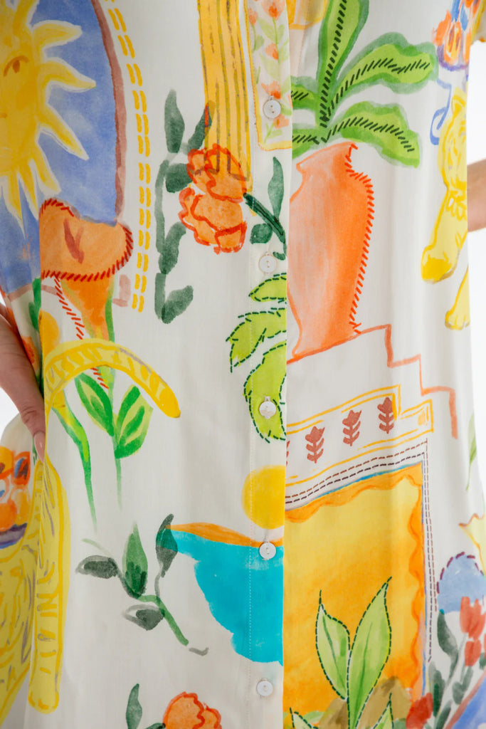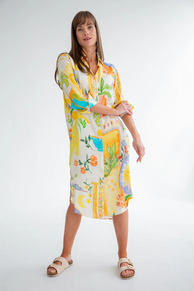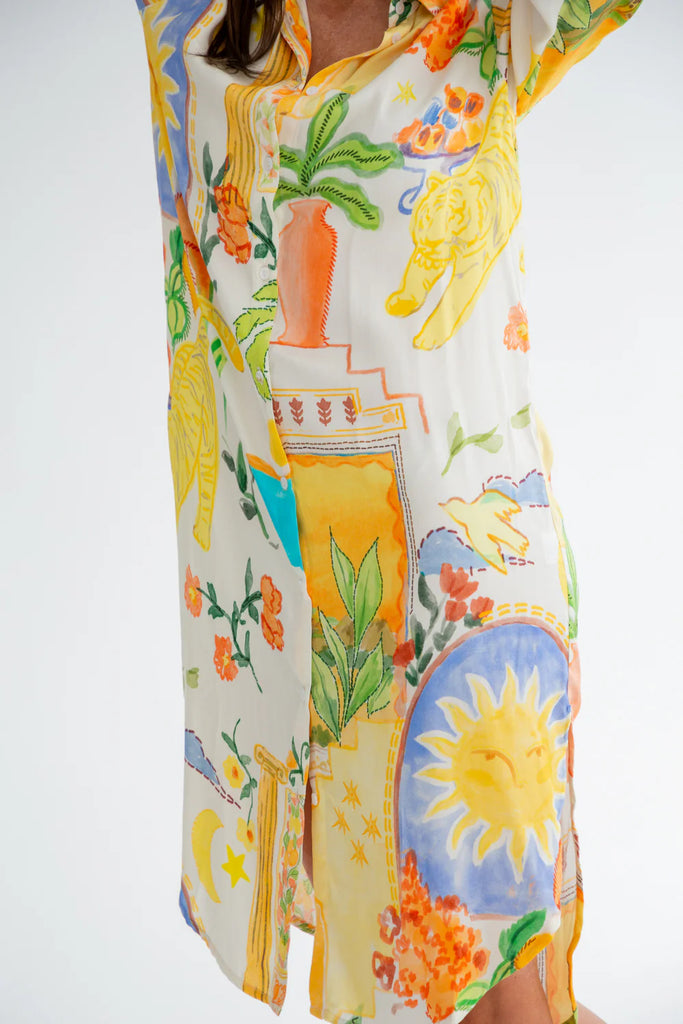 A new and versatile addition to our summer range. It is an easy wearing button up shirt dress with a high low hem with side slits. Our Evie Dress can be worn open over our Mykonos Shorts or Gorge Pants as a set!