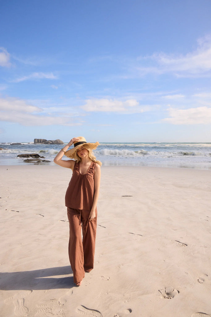 What's Summer without a pair laid-back linen pants? The Rosalie Palazzo pants tick every coastal ease and urban edit box. From weekends in the city to resort wear, these elevated staples, crafted from vegetable pigment dye ramie, will always deliver.
