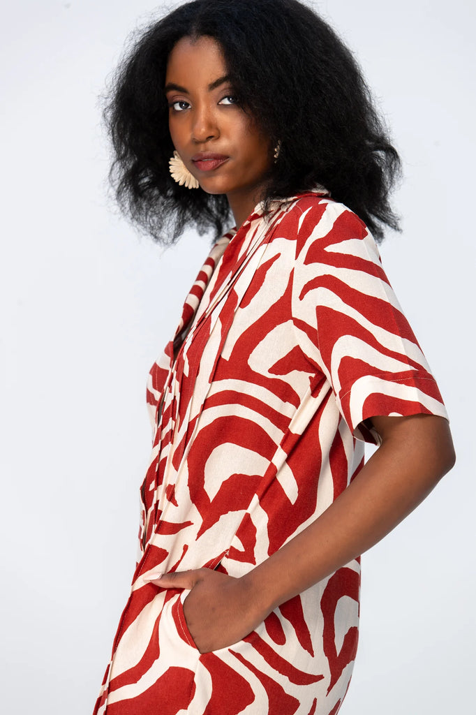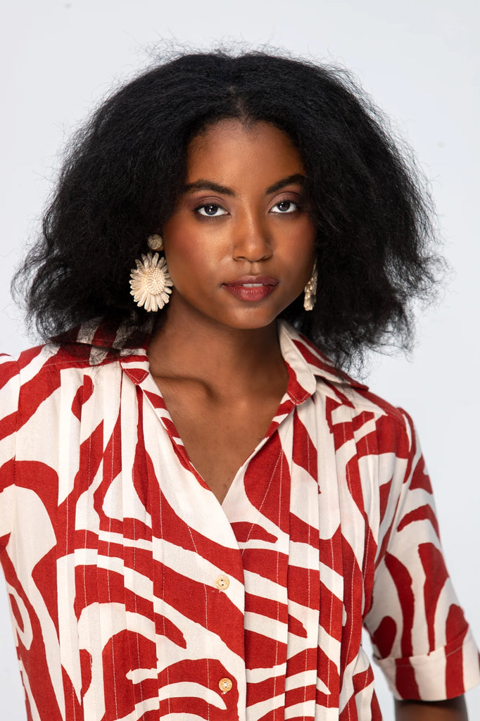 Santorini Pintuck Dress - Rust and Creme
