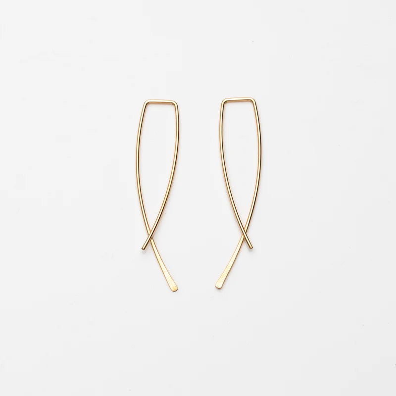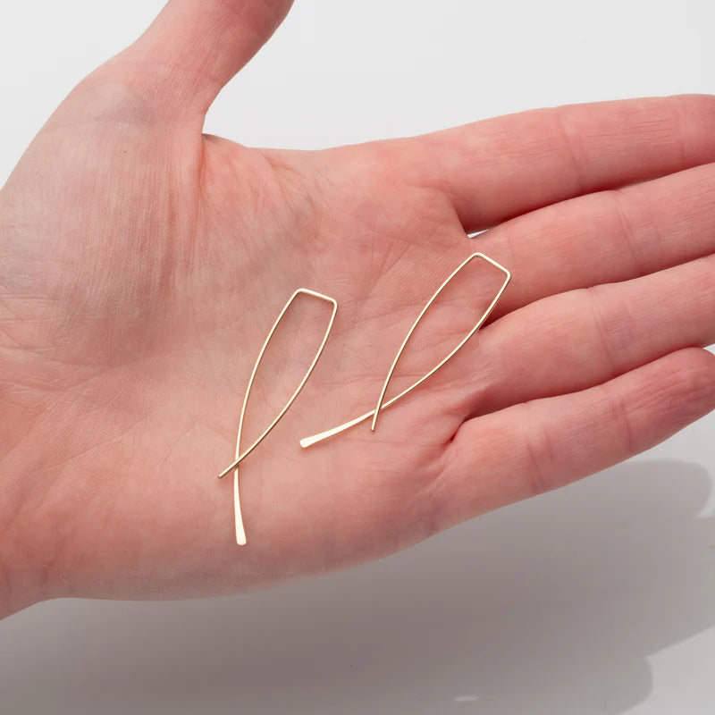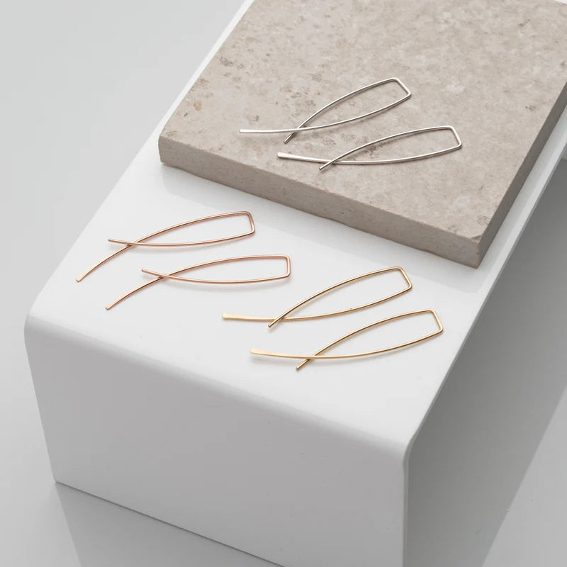 The Avery earrings are modern and minimalist and handcrafted from fine gold-filled or sterling silver wire. The longer version are 5cm long while her shorter sister is approximately 3.5cm long.