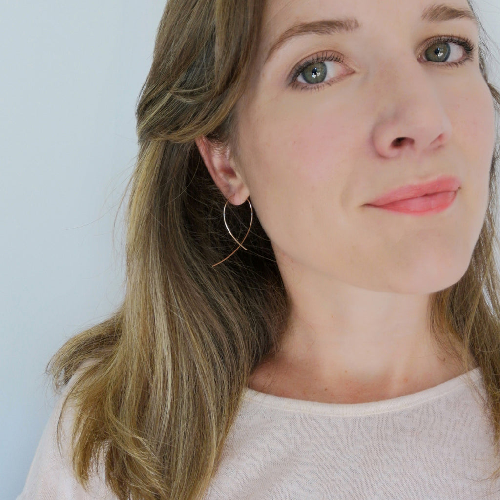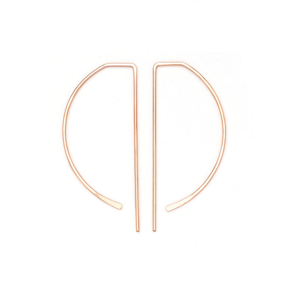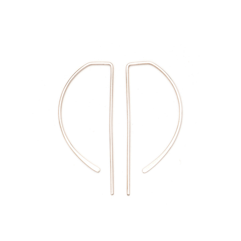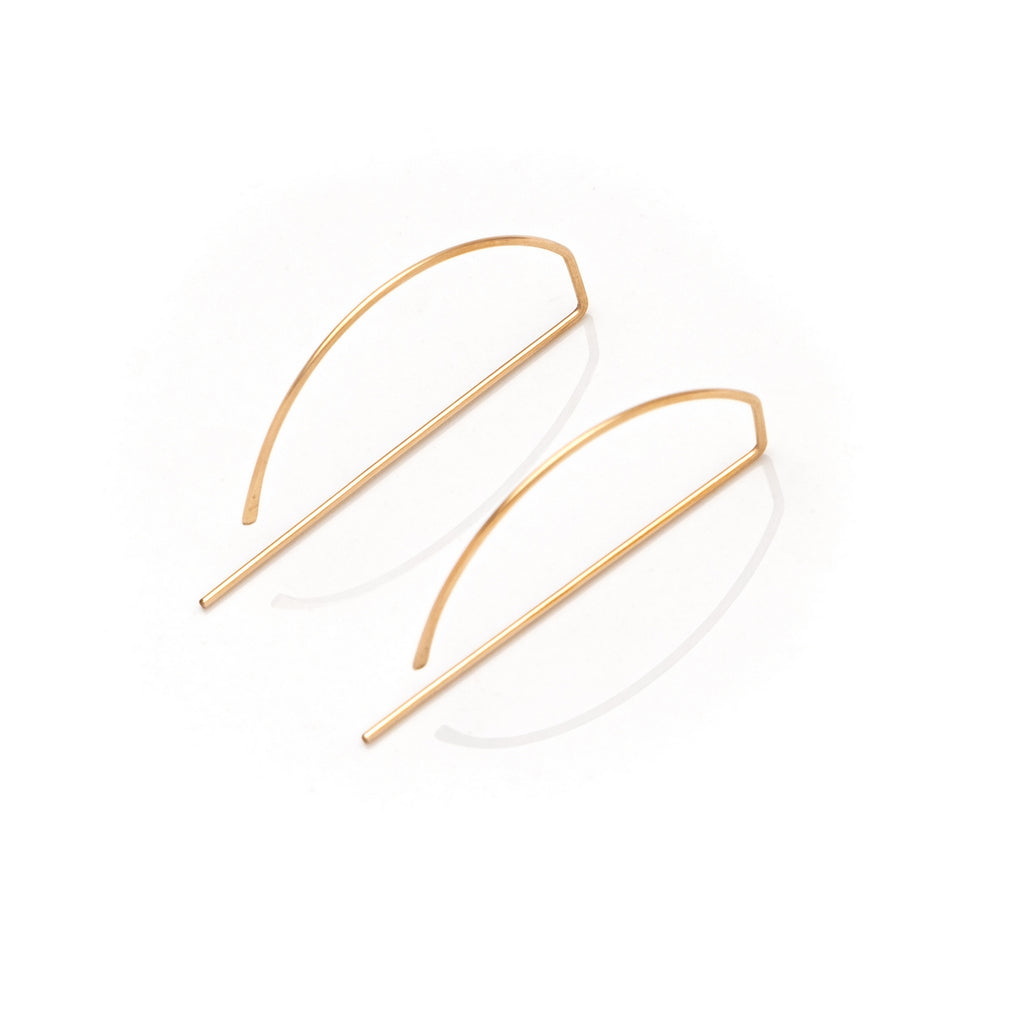 Dorus Mhor's minimalist half hoop, half pin earrings are handcrafted from sterling silver, 14kt gold filled yellow and rose gold wire.