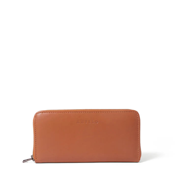 100% leather YKK zip Antique brass hardware 8 card slots Zip compartment inside for coins Size: 10cm x 19cm x 2cm