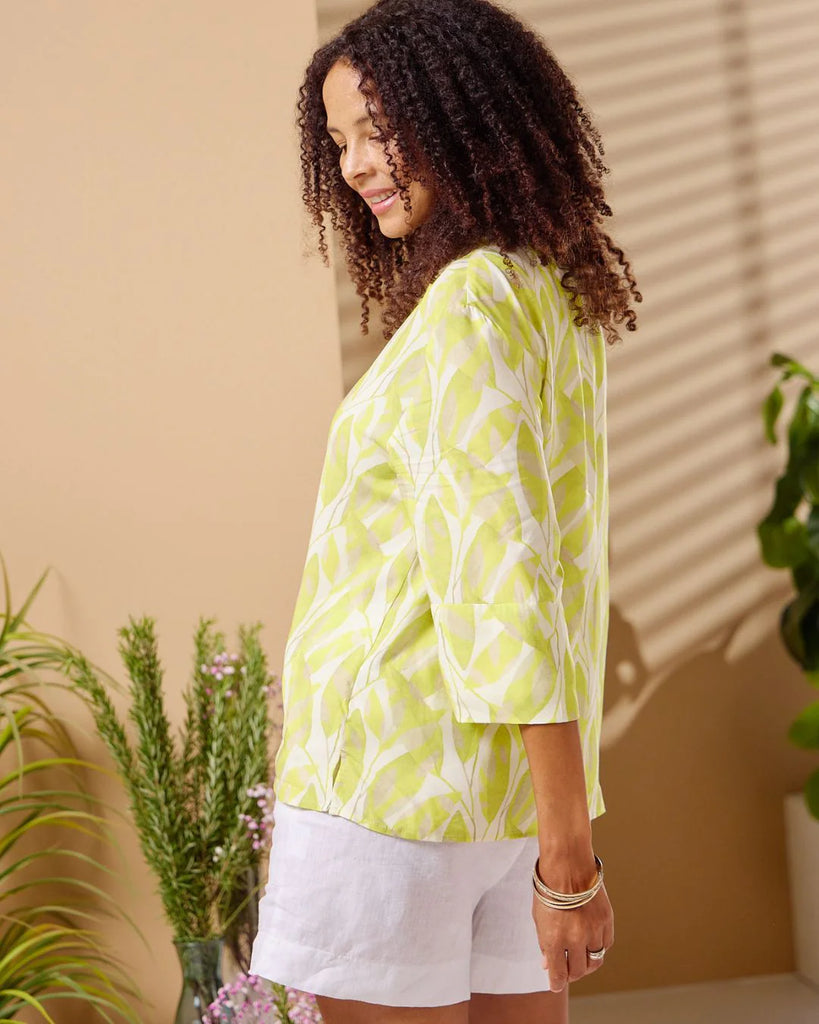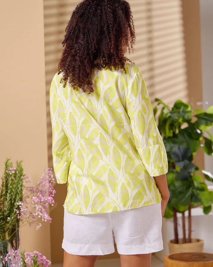 Stay cool and stylish in the River Magical Mist. Locally made from a breathable and soft Viscose fabric, the blouse is loose-fitting for effortless comfort and features an elegant v-neckline. The soft flared 3/4 sleeves are finished off with a cuff. The top has a curved hem on the front and straight hem on the back.